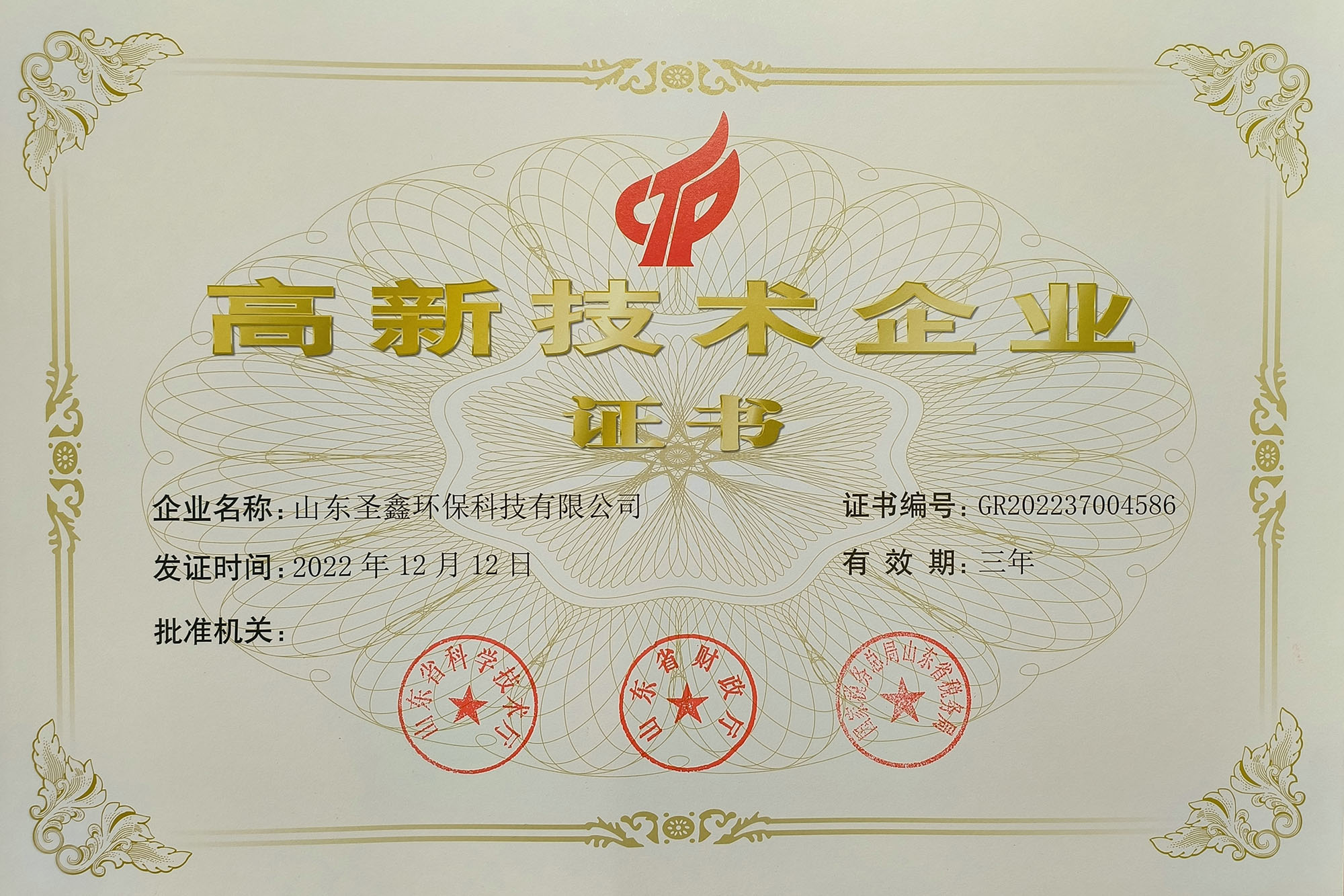 喜訊!熱烈祝賀圣鑫環(huán)保榮獲“高新技術企業(yè)認定”